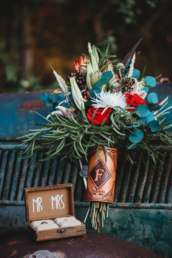 Bridal Bouquet Wrap Custom Tooled Leather Etsy Uk
