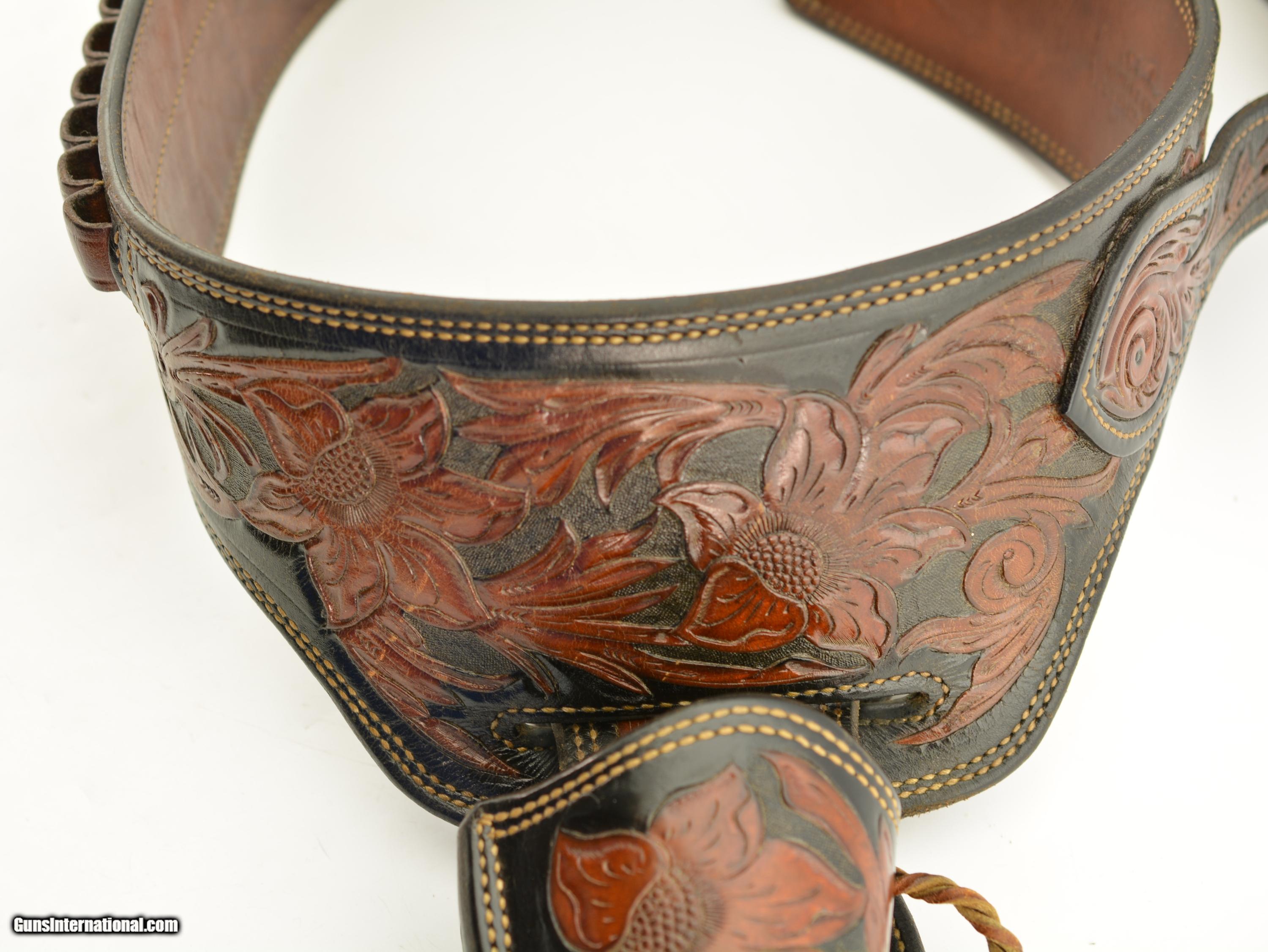 Blue Flower Hand Tooled Leather Belt Wild Wild West Travelteli